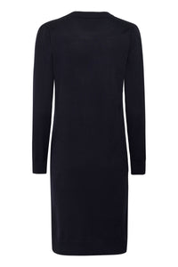 Knee-length knitted dress in a casual fit with round neck and 3/4 long sleeves. The dress has ribbing at the neck and at sleeves. The model is wearing a size M.