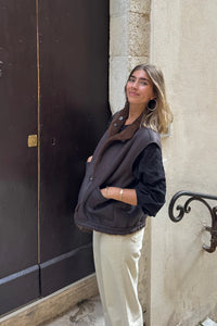 Switch up your style effortlessly with the Indi & Cold Reversible Fleece Gilet in Chocolate. One side features a sleek nubuck-style finish for a polished look, while the reverse boasts a super cosy teddy texture. The elastic waist ensures a flattering fit that moves with you, making comfort and fashion a fun duo to wear all day.
