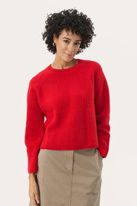 A gorgeous knit from Part Two. Luah is in a warm and vibrant red, with a boxy, cropped fit - just perfect for styling with the your high-waist trousers this season.